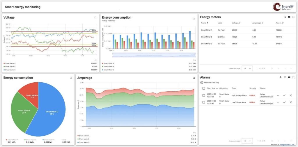 Smart Energy is intelligent energy resource management using IoT to improve efficiency, reduce costs, and automate processes. EZNet Online is a perfect platform for these tasks, providing scalable data collection, analytics, and real-time remote control.